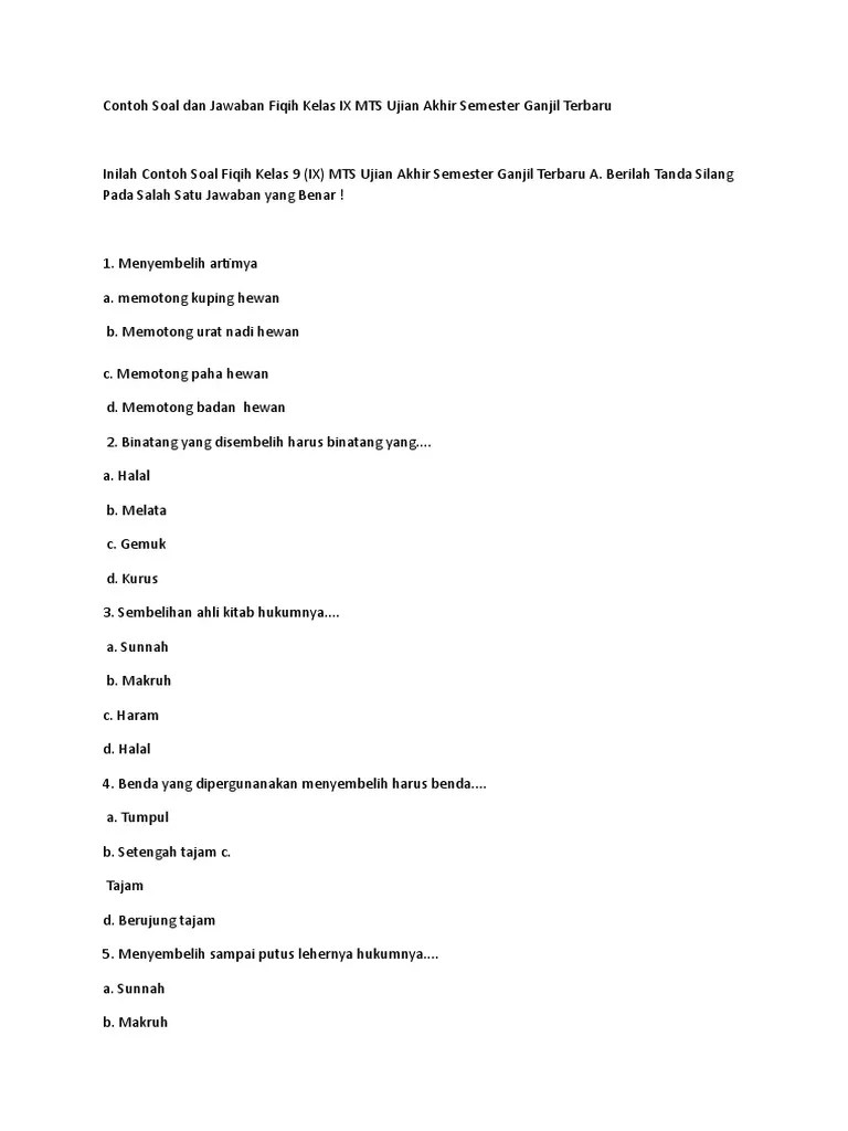 Soal bahasa arab tentang jam soal uts/pts pai semester 2 kelas 5 sd/mi tahun ajaran 2019/2020 …. Soal uas matematika kelas 6 sd semester 1 ganjil dan kunci jawaban keterangan soal. Contoh soal ujian semester ganjil mapel fikih kelas 6 full kunci jawaban materi tentang makanan haram dan halal lengkap dengan pilihan ganda. Kunci jawaban lks smp kelas 7 ips semester 1l kimchi with eish. Contoh soal terdiri dari pilihan ganda, isian dan uraian.