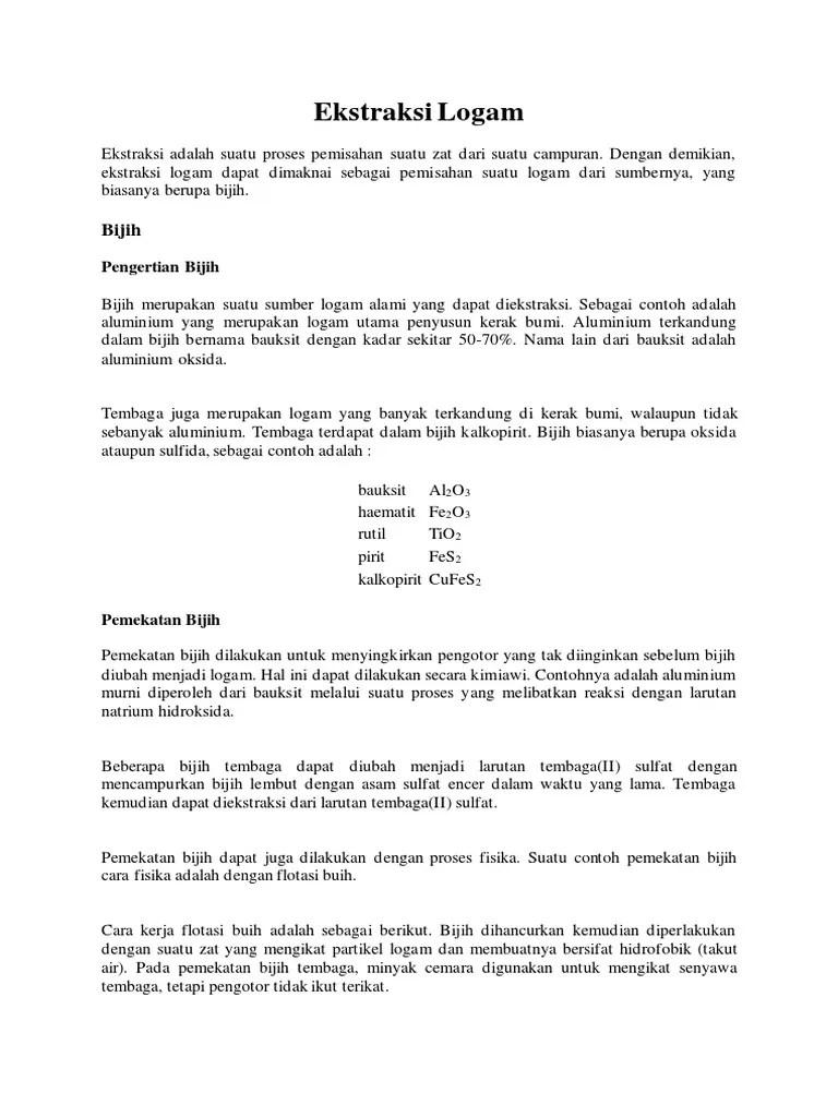 Contoh Logam Beserta Cara Ekstraksi / Cat Metalurgycal - Penetapan total unsur hara logam berat cara pengabuan basah dengan hno3 dan hclo4.